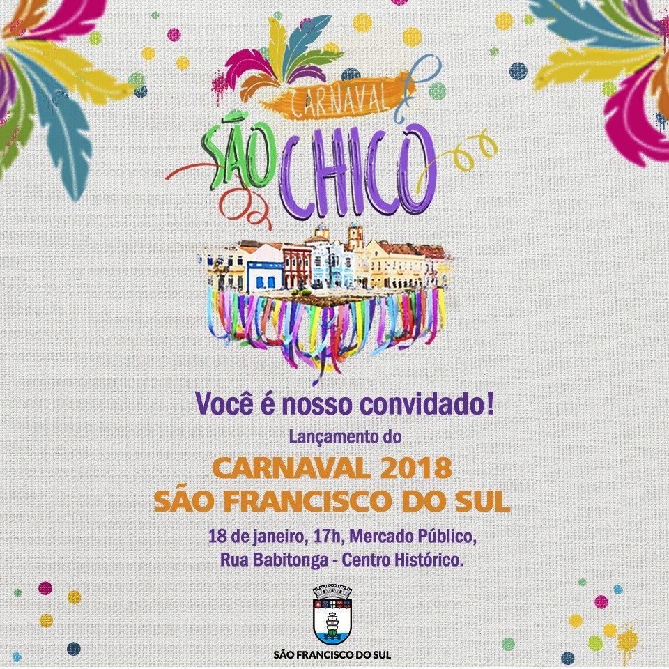 Na próxima quinta-feira (18), o clima carnavalesco vai começar a se espalhar por São Francisco do Sul. O lançamento do carnaval, que este ano tem como tema “Venha viver nosso melhor carnaval!”, será realizado no Mercado Público Municipal, às 17h. O evento contará com a participação de integrantes das escolas de samba. Será um fim de tarde de muita alegria e energia francisquense.